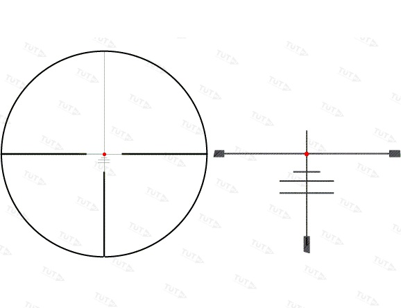 Прицельная марка находится в фокальной плоскости окуляра и не меняет видимых размеров на любой используемой кратности. Точка подсветки четкая, яркая, красная, специального комфортного для глаза человека оттенка. Совокупность особенностей прицельной марки и оптических характеристик прицела позволяет быстро и точно находить цель на любой используемой кратности и вести охоту как на ближних дистанциях, так и на средних и дальних дистанциях, например, в горах.