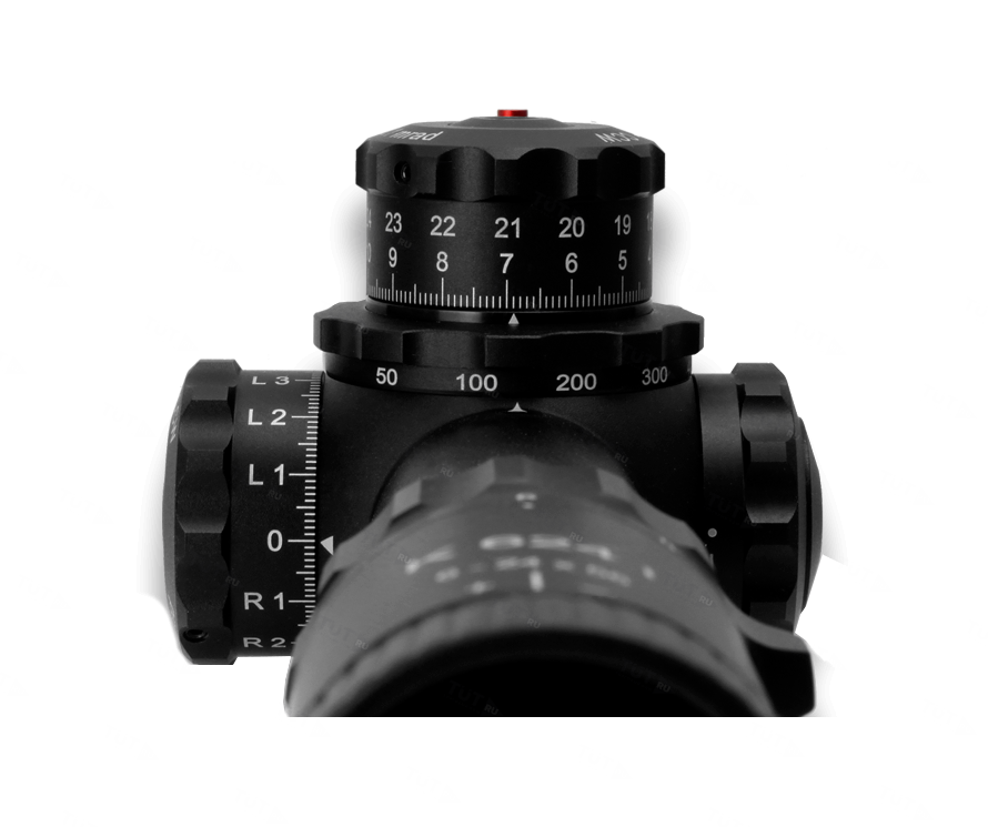 Прицельная марка размещена в фокальной плоскости объектива (первой фокальной плоскости), что позволяет использовать её на любой кратности.