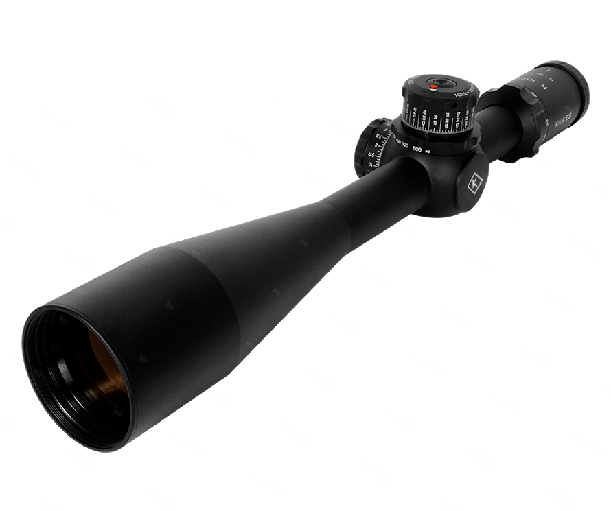 При диапазоне кратностей увеличения от 10 до 50 и светосильном объективе диаметром 56 мм прицел обладает удивительно компактными размерами и малой массой.