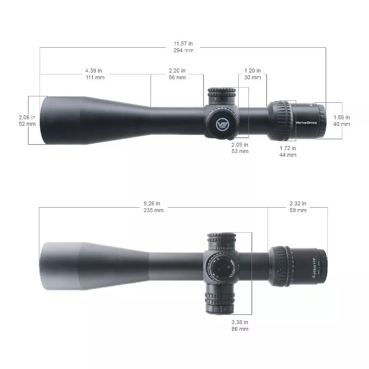 Прицел Vector Optics Veyron 6-24x44 IR FFP — самый «дальнозоркий» в серии, обеспечивает максимальное увеличение в 24 крата и позволяет вести стрельбу по сильно удалённым мишеням. На нижних значениях диапазона кратности картинка остаётся достаточно светлой и «читаемой» даже в условиях пониженной освещённости, а для улучшения яркости и контраста на все линзы нанесено полное многослойное просветление.