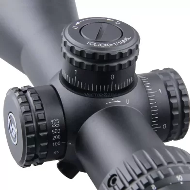 Прицел оснащен открытыми барабанами ввода поправок с шагом выверки 0,1 MIL. Стрелкам доступен диапазон для внесения вертикальных и горизонтальных поправок до 17,5 MIL. Револьверные головки имеют функции блокировки и обнуления.