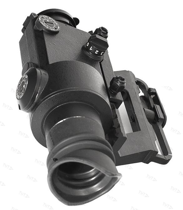 Объектив закрывается откидывающейся крышкой, которая защищает линзы от царапин и пыли. Стационарный наглазник фиксирует при стрельбе положение глаза относительно оптической оси окуляра и отсекает боковую засветку.