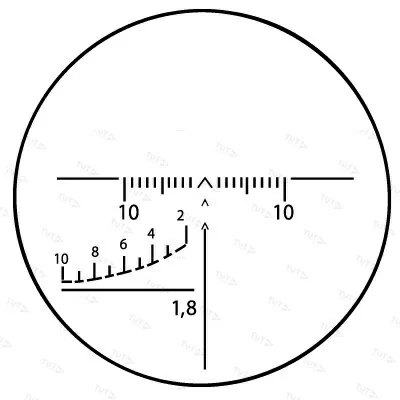 Прицел комплектуется сеткой с дальномерной шкалой, позволяющей приблизительно определять расстояние до целей высотой в 1,8 метра и чётко видимыми контурами. Максимальное удаление объекта от стрелка - 1000 метров. По горизонтальным штрихам слева и справа от цента можно вводить поправки, учитывающие силу ветра при стрельбе. Дополнительные прицельные знаки, расположенные вертикально под центральным прицельным знаком, служат для ввода поправок на дальность 900, 1000, 1100 и 1200 метров (без учёта боковых поправок).