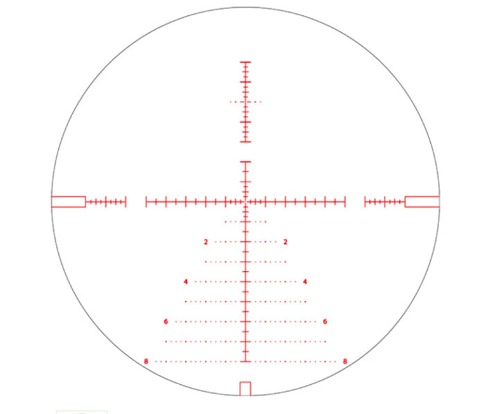 Фирменная прицельная марка AM2 разработана специально для точной стрельбы на разнообразных дистанциях. Сетка расположена в первой фокальной плоскости, масштабируется в соответствии с оптической кратностью прицела. Марка дает возможность оценить расстояние до цели и рассчитать правки на ветер и скорость передвижения объекта.