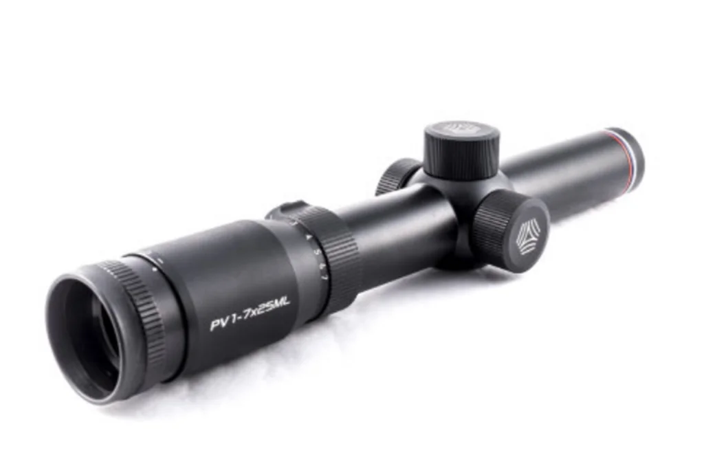По сравнению с предшествующими моделями Пилад PV 1-7х25 имеет больший коэффициент оптического увеличения. Честная единица соответствует концепту LPVO оптики (Low Power Variable Optic),открывая широкие возможности для тактического применения на коротких дистанциях. Широкоугольный объектив максимально хорошо подходит для быстрого поиска и оперативного наведения на цель. Система быстрой фокусировки и смены кратности дает возможность для манипуляций с настройками, тратя минимум времени. Угол поля зрения на минимальном увеличении равен 14°, на максимальном - 2,3°. Большой диаметр выходного зрачка не вызывает усталости зрения. Вынос на расстояние 75 мм безопасен для работы крупным калибром.
