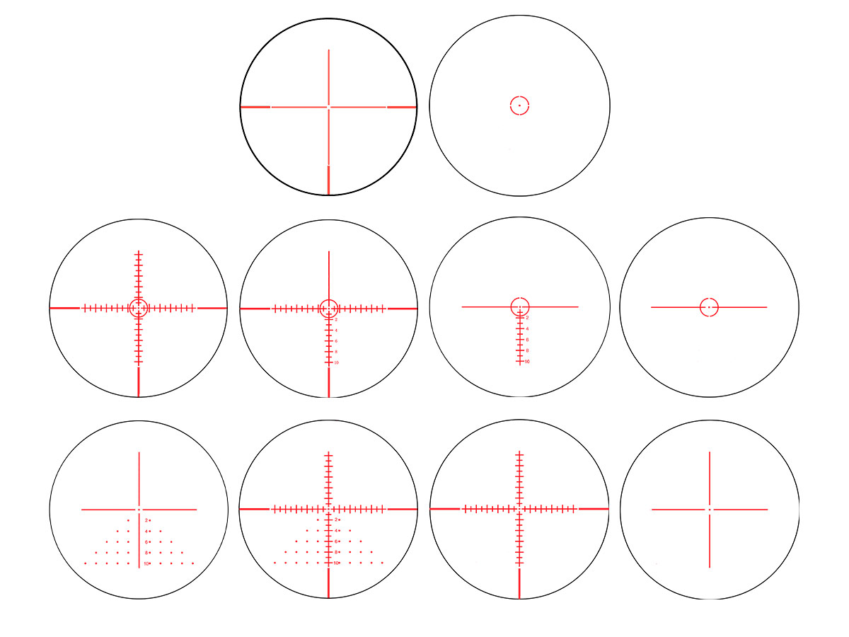 Оптика этой модели имеет полное многослойное просветление, которое обеспечивает контрастное и четкое изображение с хорошей цветопередачей. Особенностью прицела является встроенный ЖК-дисплей, который проецирует прицельную сетку, прибор можно переключать между 10 сменными сетками, среди них: дуплекс, простое перекрестие, перекрестие с отметками высоты и ветра, круг с точкой, баллистические и другие. Большой выбор сеток позволит использовать прицел стрелку любого уровня, с их помощью можно делать поправки по ветру, определять дистанцию до объекта и не только. Регулировка яркости подсветки и выбор типа сетки осуществляются с помощью кнопок, расположенных на прицеле.
