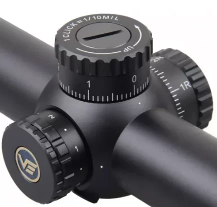 В этом прицеле применены открытые барабаны для внесения поправок, оснащенные четко видимыми метками градуировки. Минимальный шаг коррекции составляет 0,1 MIL, позволяя точно настраивать вертикальные и горизонтальные параметры в рамках 40 MIL.