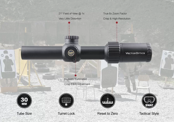 Прицел Vector Optics Taurus 1-6x24 SFP имеет следующие характеристики: