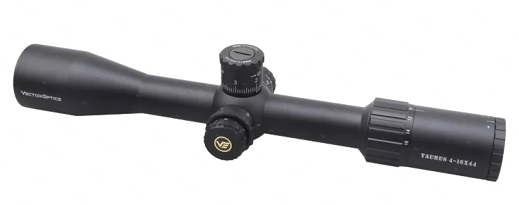 Тактические барабаны с Zero Stop. Высокие открытые барабаны выверки вращаются с чёткими, хорошо различимыми на слух щелчками (почти как у винтов-щелкунчиков), размечены в милах или миллирадианах с шагом 0,1 мил (или 10 мм/100 м) с нанесением шкалы полных оборотов на неподвижной части маховика. Поскольку разметка выполнена в тех же единицах измерения, что и разметка сетки, поправки одинаково удобно вносить как по разметке направляющих, так и по числу кликов. То, что также отличает «большекратники» Vector Optics Taurus SFP от Taurus FFP — это наличие системы Zero Stop в вертикальном барабане. Благодаря такой системе, можно выполнить пристрелку прицела на конкретную дистанцию, после чего заблокировать положение «нового» нуля, — и барабан вертикальной выверки будет легко вернуть на «ноль» без возможности вносить отрицательные поправки.