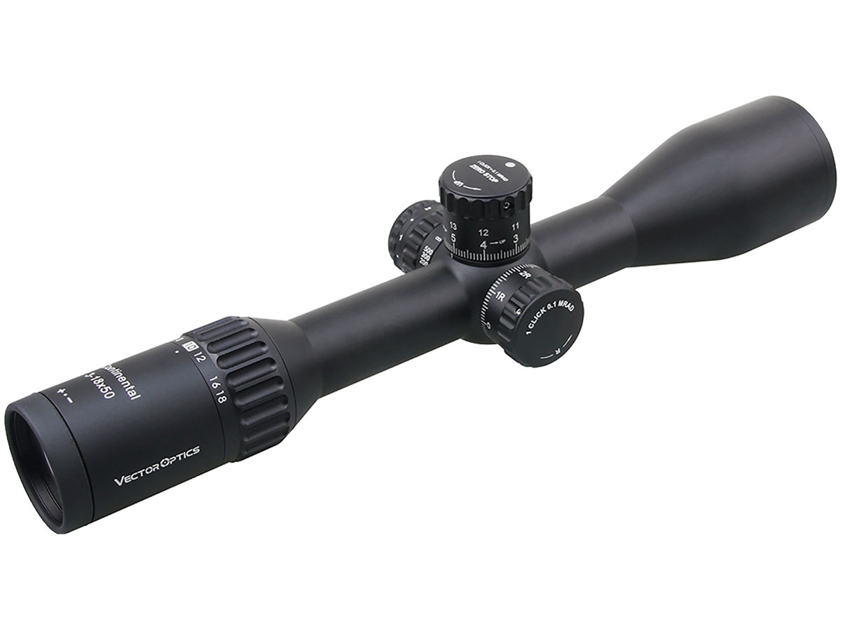 Корпус 30мм. Ударная стойкость — .308Win включительно. Прицел Вектор Оптикс Континенталь x6 3-18х50 Tactical ARI рассчитан на длительную эксплуатацию на крупном калибре и в сложных погодных условиях. 30-миллиметровый корпус выполнен из алюминия марки 6061, а механизмы регулировки и выверки — из ещё более прочного и долговечного алюминия марки 7075. Конструкция держит на отдачу калибров 12 и .308 Winchester, а удаление выходного зрачка фиксировано на безопасных 100 мм и не зависит от выставленной кратности. Класс пыле/водонепроницаемости максимальный для оптических приборов — IP67: полная защита от пыли, росы, снега, ливневых осадков и проникновения воды при случайном падении в воду на глубину до 100 см. Предусмотрена также установка на оружие с планкой Picatinny / Weaver — в комплекте с прицелом идут оригинальные кольца (medium).