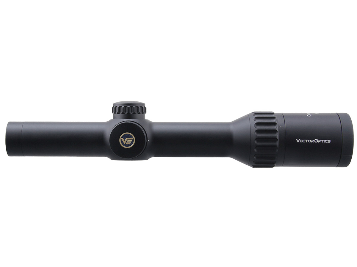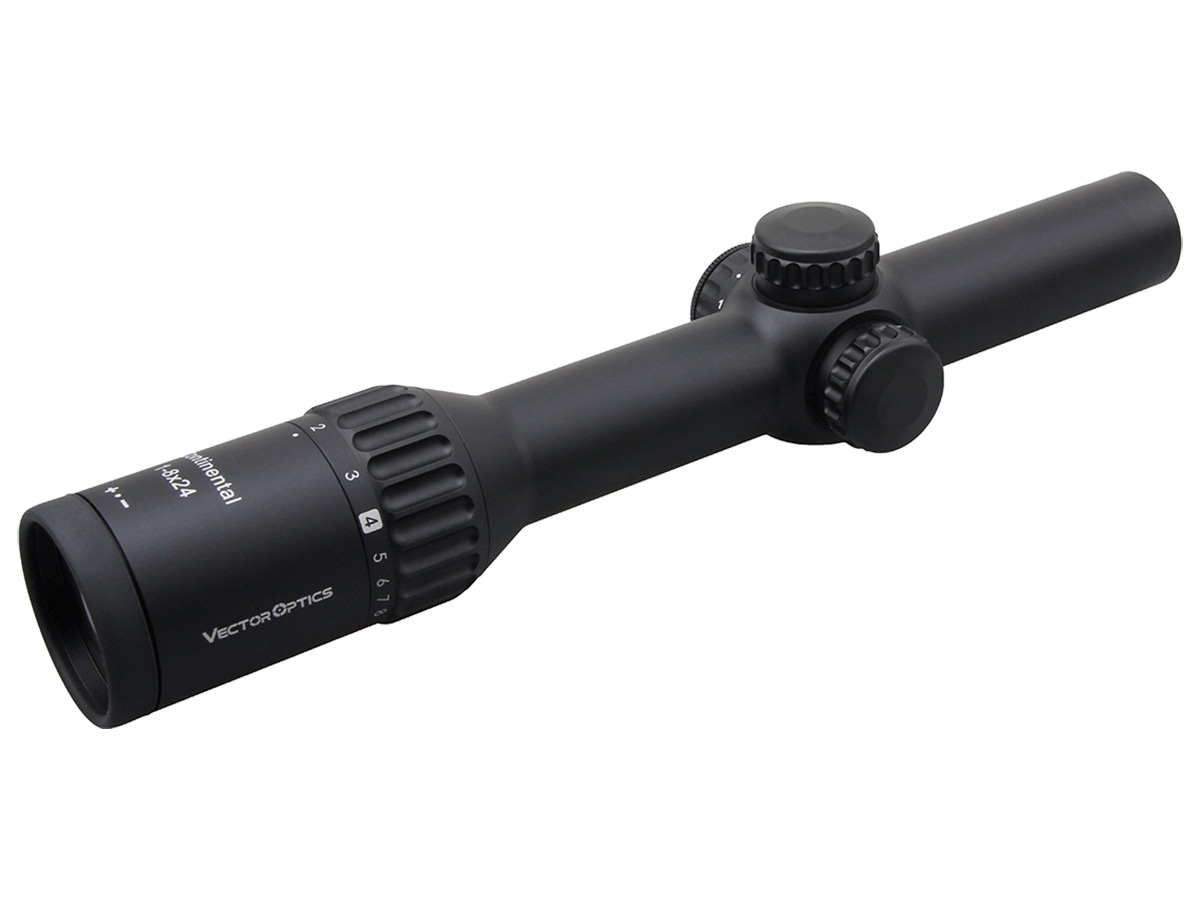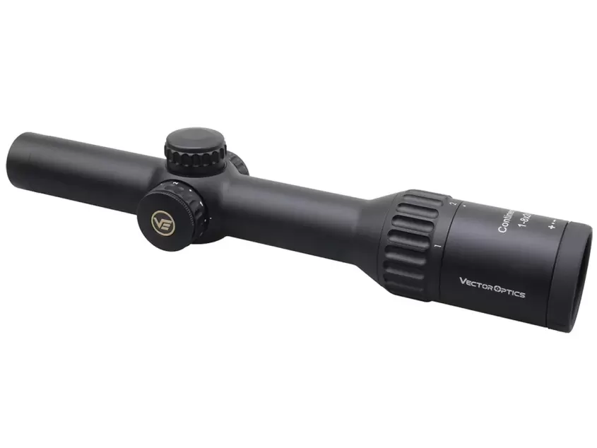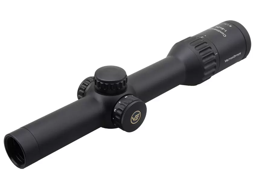 Низкопрофильные барабаны выверки не только закрываются крышечками, но и имеют подпружиненную систему блокировки от случайного прокручивания / сбоя настроек: чтобы повернуть маховик, потребуется поднять его вверх / вбок до упора. Клики в 1/2 MOA (14,7 мм/100 м) хорошо ощущаются и на слух, и тактильно. Диапазон выверки очень большой — 140 MOA (порядка 4,1 м/100 м, как и у тактической версии Continental Tactical ED 1-8x24).