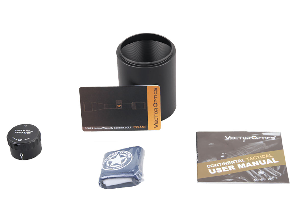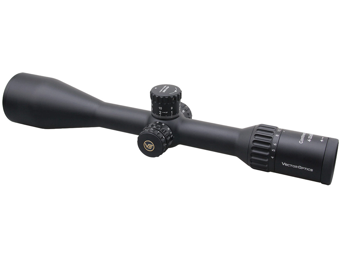 Тактический дизайн. Высокая прочность и водонепроницаемость. Как и большинство тактических прицелов премиум сегмента, Вектор Оптикс Континенталь x8 4-32x56 SFP Tactical ED выполнен в прочном монолитном 30-мм корпусе из алюминия 6061. Чтобы механика прослужила дольше, для подвижных узлов и барабанов использовали более износостойкий алюминий 7075. Конструкция (по заявлению производителя) держит ударные нагрузки порядка 750 G (калибр .300 Win, .308 Win), полностью защищена от пыли, осадков и внутреннего запотевания, сохраняет герметичность даже после случайного падения в воду на глубину не более 1 м (IP67) и может использоваться и зимой до -20°C, и летом до +50°C. Для установки на оружие используются либо штатные кольца на Picatinny, либо кронштейн с аналогичной посадкой 30 мм.