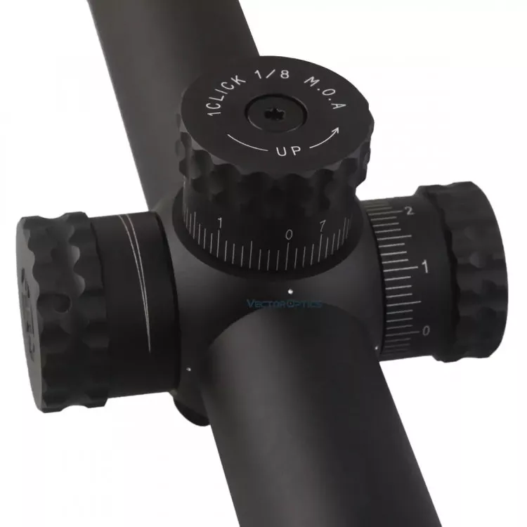 Боковая отстройка от параллакса позволяет, не отвлекаясь от окуляра, получить резкое изображение сетки и цели на всём диапазоне рабочих дистанций свыше 9,1 м. Отличие не только в том, что у Vector Optics Sentinel дистанция отстройки существенно меньше, чем у прицелов-высокоточников из других серий, но и в отсутствии привычной разметки барабана фокусировки объектива. Здесь фокусировка на дальность выполняется так же плавно, как у биноклей. Тем же, кто привык ориентироваться по чёткой разметке, рекомендуем либо приобрести оцифрованное колесо боковой фокусировки, либо разметить маховик самостоятельно под свои дистанции.