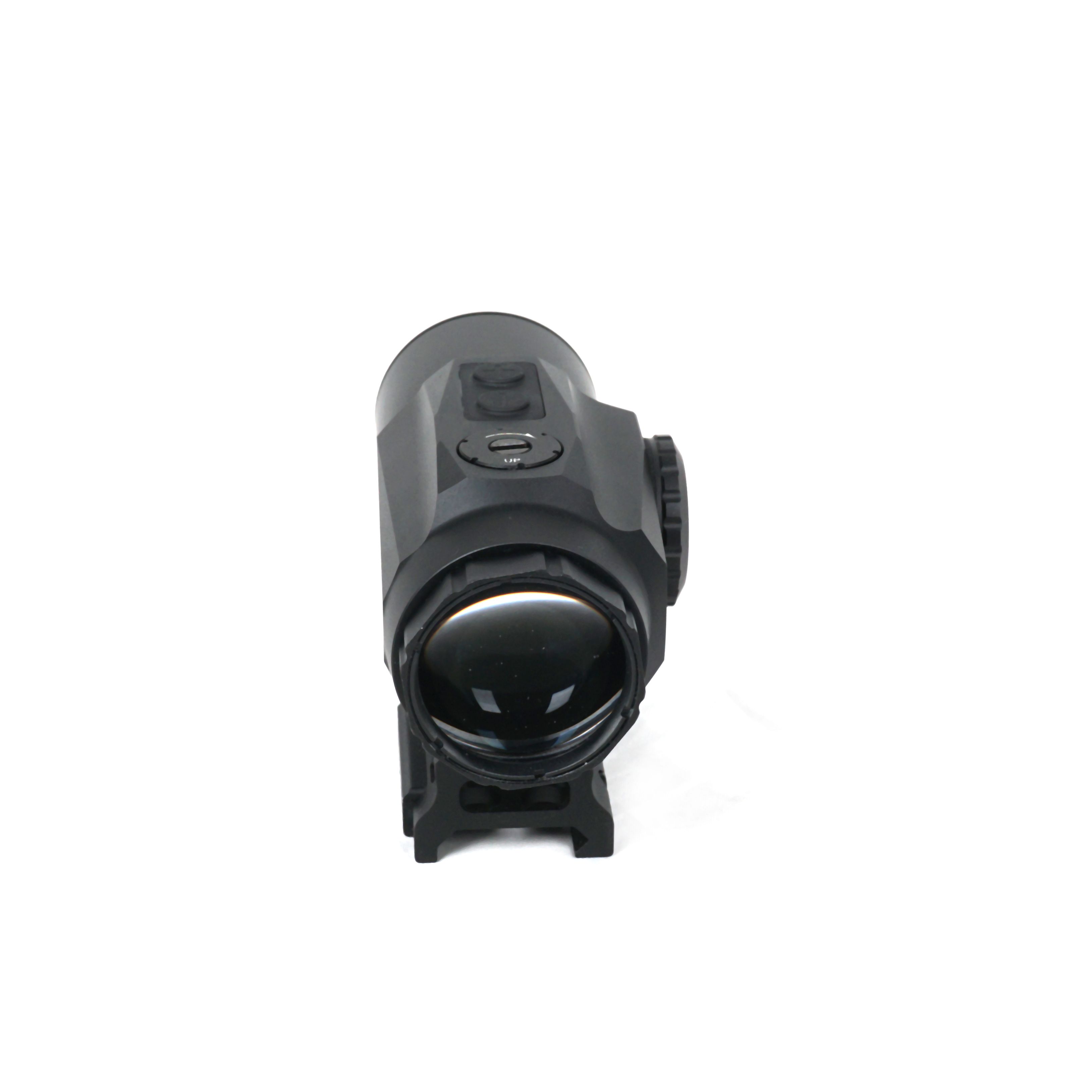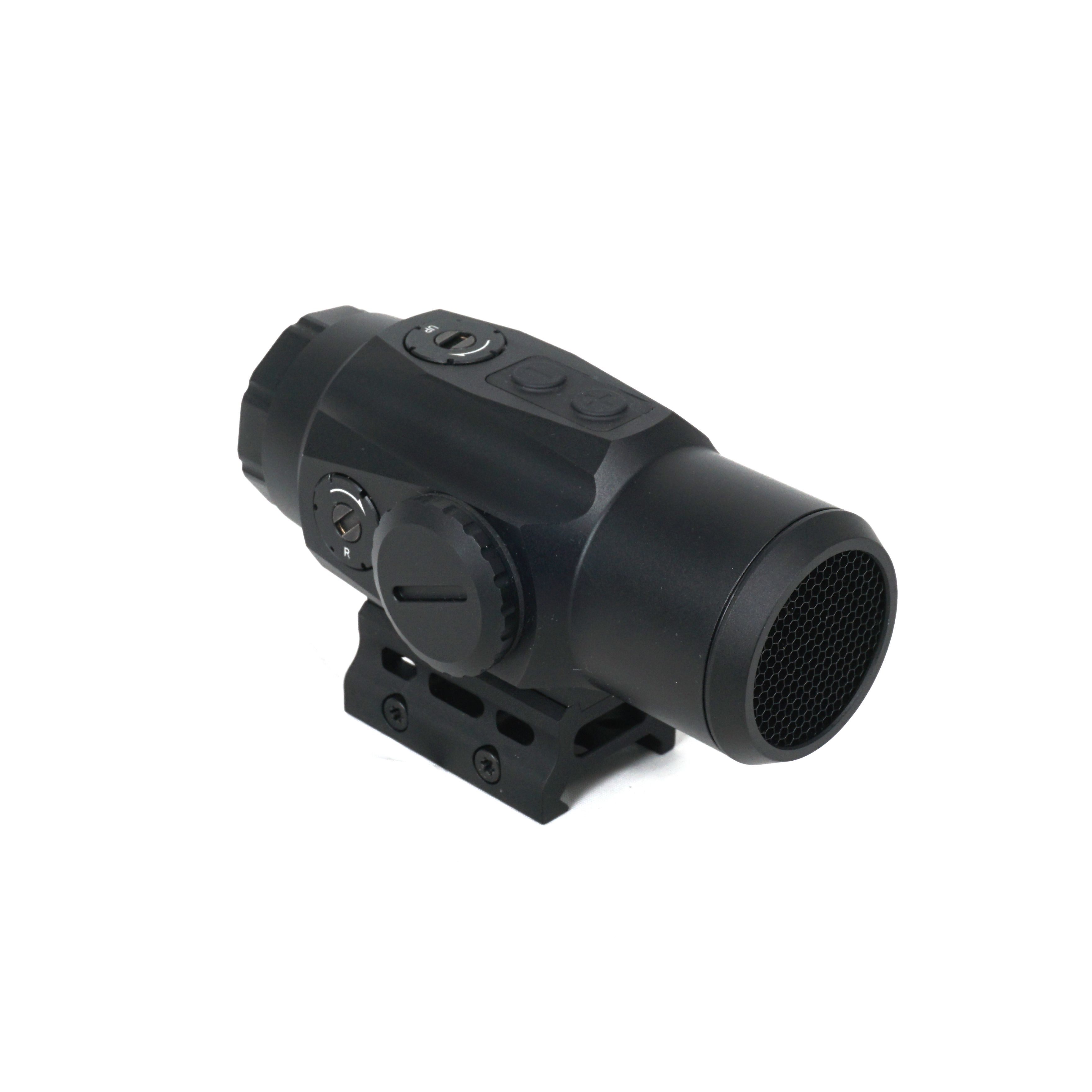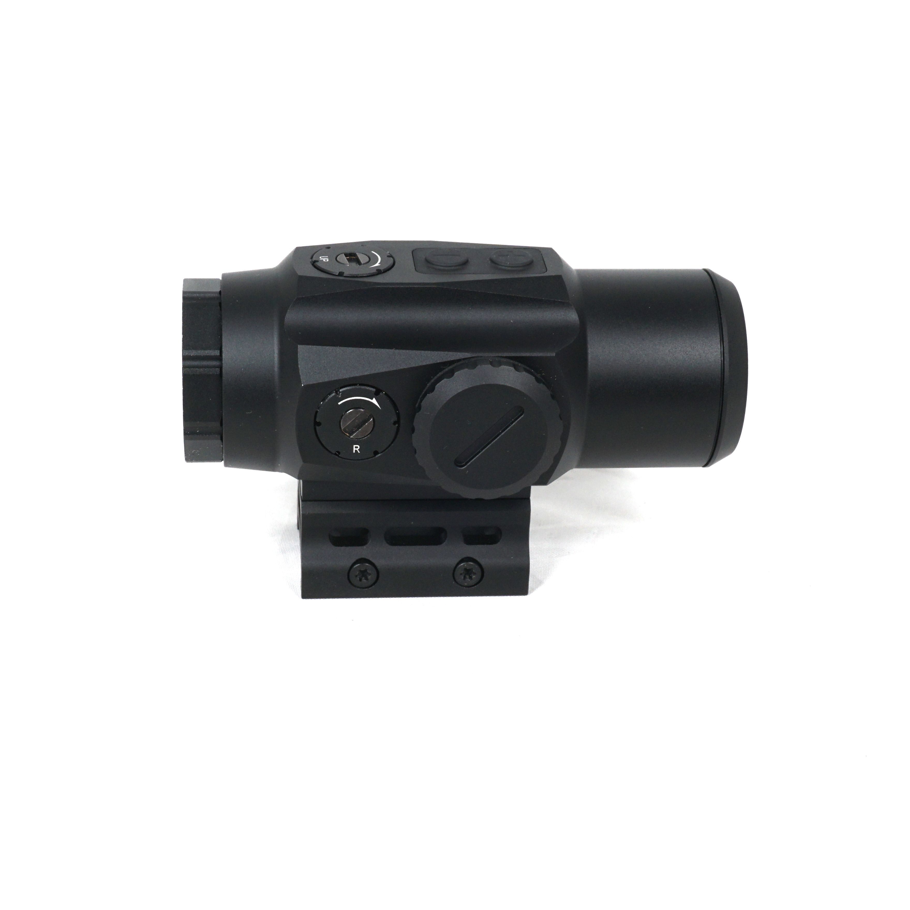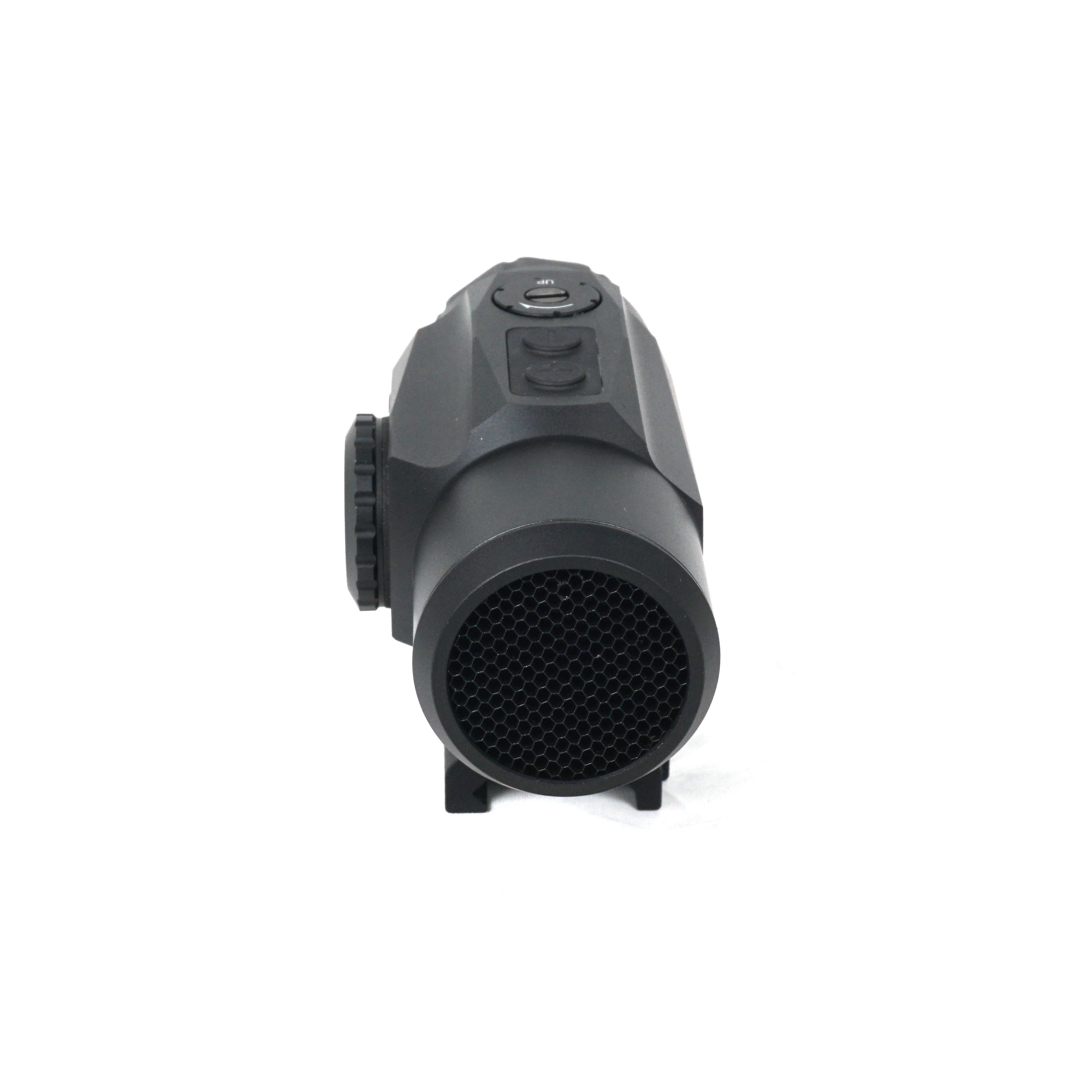 Регулировка яркости в пределах 10 уровней позволяет адаптировать видимость прицельной марки к различным условиям освещения. Восемь самых ярких режимов предназначены для использования коллиматора днем, тогда как два тусклых режима предусмотрены для совместной работы устройства с приборами ночного видения (ПНВ). Настройка интенсивности свечения выполняется с помощью кнопочного блока управления с прорезиненными выпуклыми кнопками.Питание