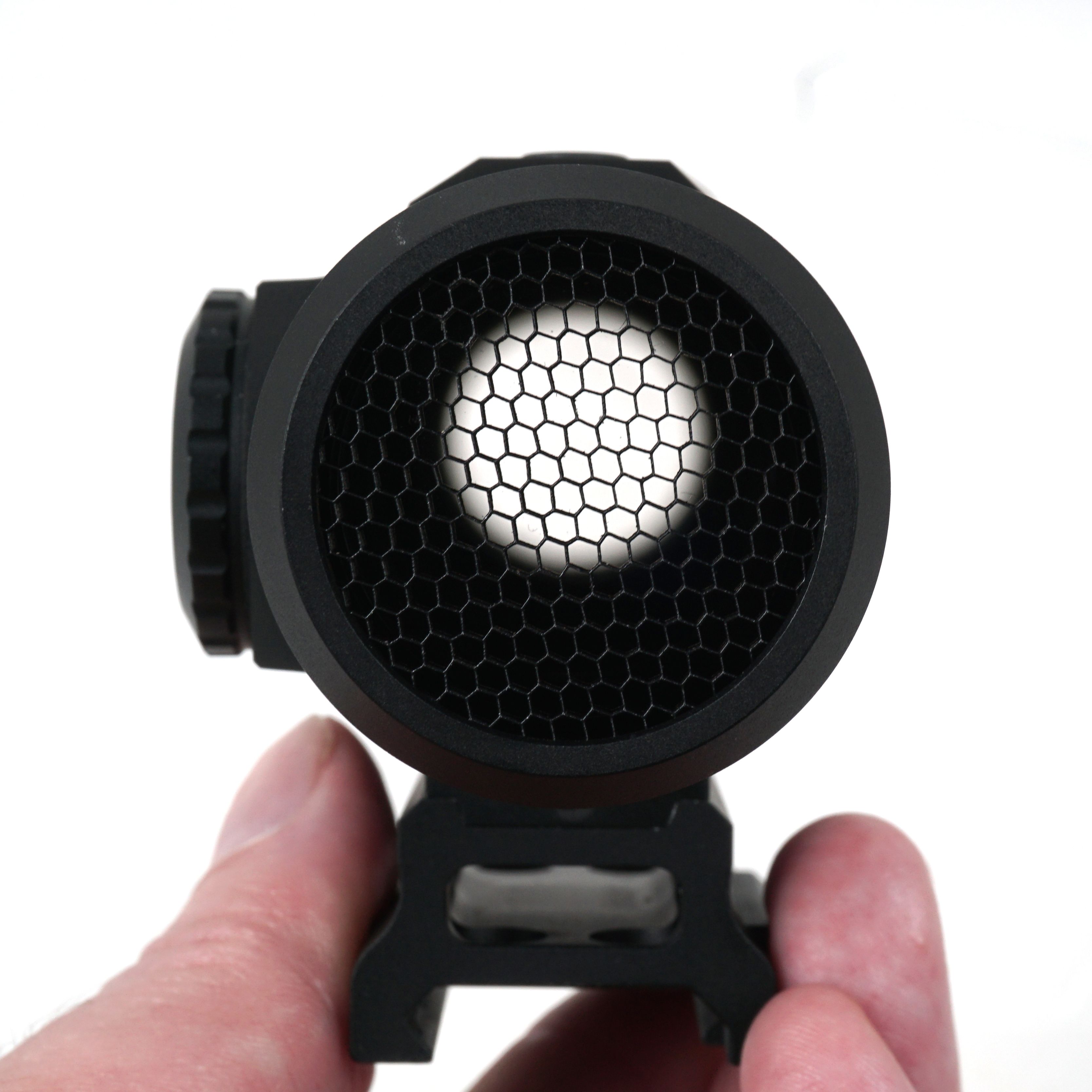 Для пристрелки и внесения изменений в положение прицельной марки предусмотрены механизмы открытого типа. Регулировочные винты утоплены в тело корпуса, что полностью исключает вероятность их смещения при плотном физическом контакте. Шаг выверки равен 1 угловой минуте (МОА). Диапазон регулировок по вертикальной и горизонтальной оси - 100 МОА.
