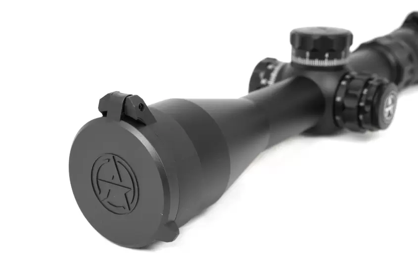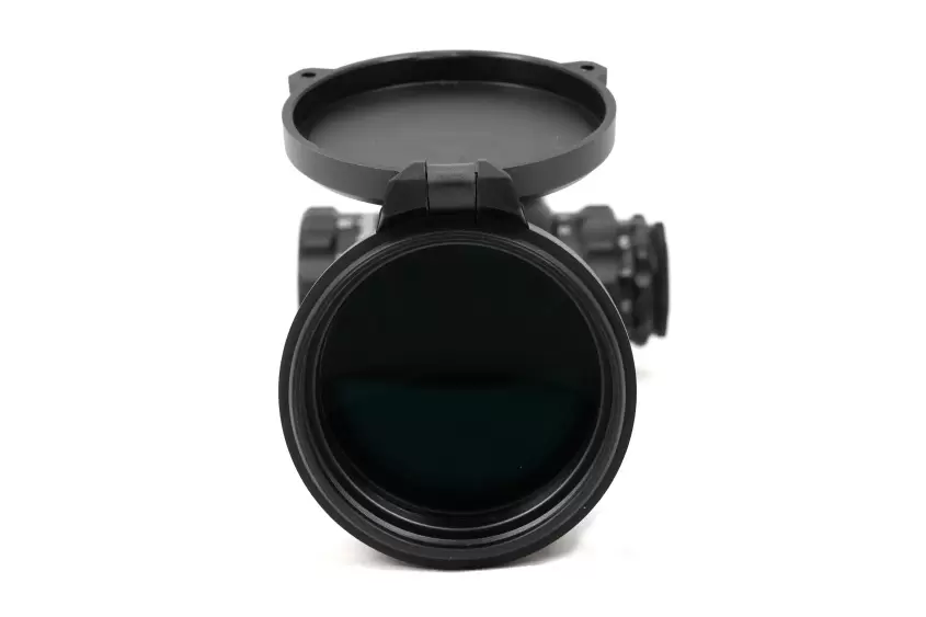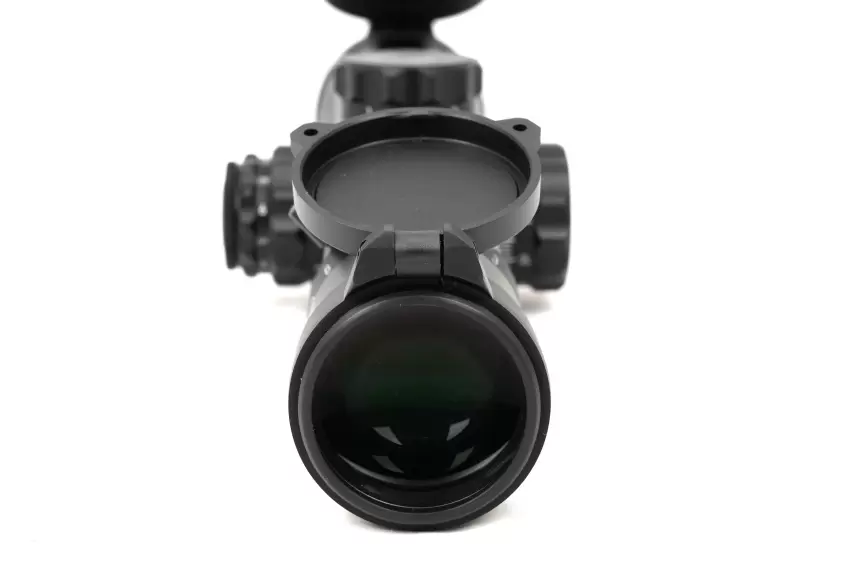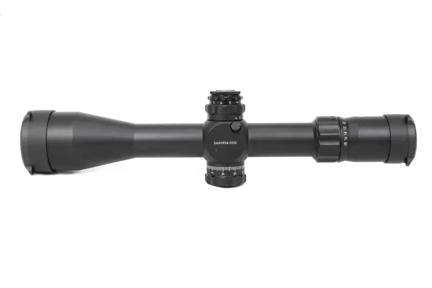 Линзы окуляра и объектива изготовлены из премиальных ED стекол с низким уровнем дисперсии. Также на внешние поверхности оптических элементов нанесено многослойное просветляющее покрытие FMC. Диапазон оптического увеличения от 3 до 18 крат – оптимальное решение для стрельбы на средних и дальних дистанциях. Механизм быстрой фокусировки окуляра позволяет за несколько мгновений приблизить картинку и совершить точный выстрел. Широкий угол поля зрения (FOV) на минимальном увеличении (7,8°) позволяет быстро находить цель и точно на нее наводиться. На максимальном увеличении стрелок будет видеть область пространства шириной 2,4 м на отдалении в сто метров. Выходной зрачок вынесен на расстояние 94 мм.