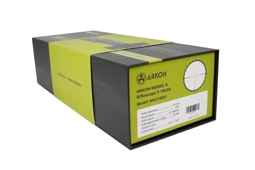 Оптический прицел Arkon Model A 3-18x50 – средняя модель премиальной линейки продукции 2024 года от российского производителя Arkon Technologies. Новинка построена на 34 трубе, имеет светосильный объектив и внушительный диапазон кратности, позволяющий реализовать потенциал мощных снайперских винтовок на все 100%. Прицел оснащен баллистической прицельной FFP сеткой с многоуровневой подсветкой, тактическими барабанами ввода поправок с шагом 0,1 MIL и боковой отстройкой от параллакса. Оптическая система построена на низкодисперсных ED стеклах, обеспечивающих прекрасную видимость целей даже при слабом, сумеречном освещении. Корпус прицела изготовлен из цельной заготовки авиационного алюминия, полностью водонепроницаем и заполнен осушенным азотом.