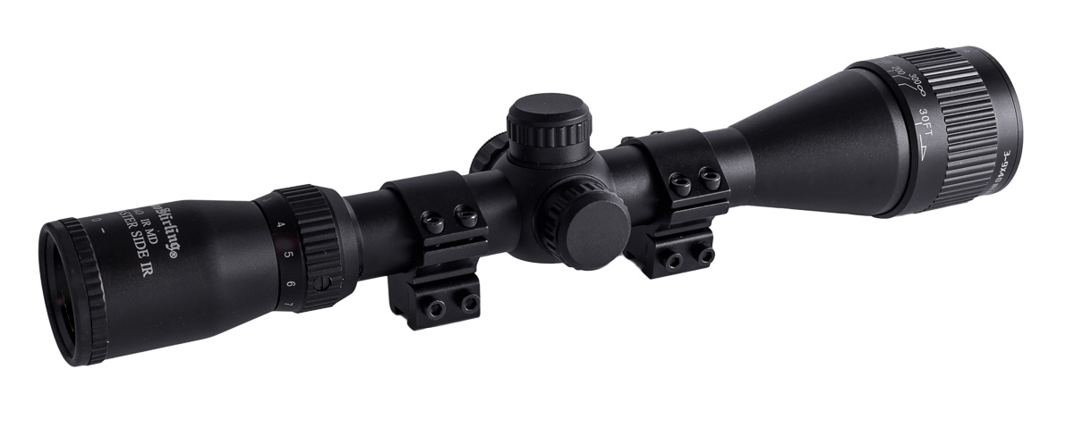 Серия Mountmaster. Эта серия была разработана, специально для того чтобы обеспечивать быструю отстройку от параллакса, и теперь вы сможете прицелиться по целям, которые всего в 10 метрах от вас без боязни промахнутся из-за влияния параллакса. А так же дополнительно добавлен винт, который способствует гашению пружинно - поршневой отдачи. В пружинно-поршневых пневматических винтовках, которые выпускают пулю со скоростью, близкой к скорости пули мелкокалиберной винтовки, присутствует сильная отдача, которая зачастую повреждает оптический прицел. Прицелы серии Mountmaster аналогично серии AIRKING можно устанавливать на пневматическое оружие.
