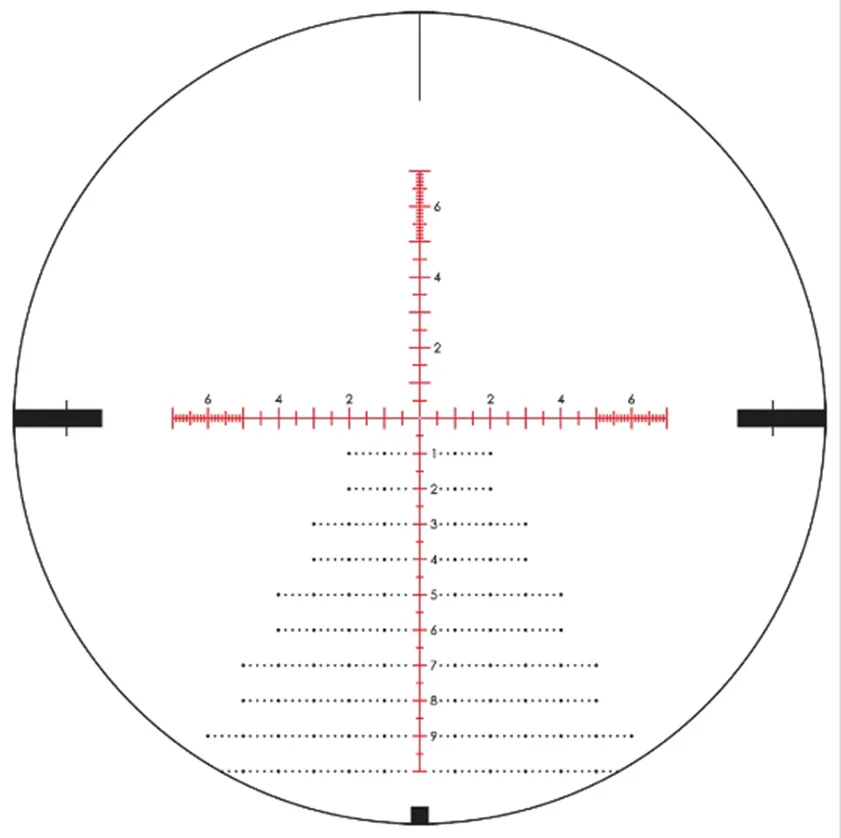 Прицельная сетка EBR-2C (аналог снайперского “Хорус”) создана разработчиками для уверенной работы на дальних дистанциях. Сетка выгравирована на стекле и расположена в первой фокальной плоскости, сохраняя угловые размеры при любом увеличении. Стрелки могут вести огонь выносом точки прицеливания. По расширенной градуировке можно компенсировать падение пули на дистанции, брать упреждение и учитывать ветровую нагрузку. Также доступно измерение скорости движения цели и определение дистанции. Подсветка разграфленных направляющих поможет идеально настраивать видимость сетки на темном фоне мишеней. Блок управления интегрирован в боковой барабан отстройки от параллакса, доступно 10 уровней.