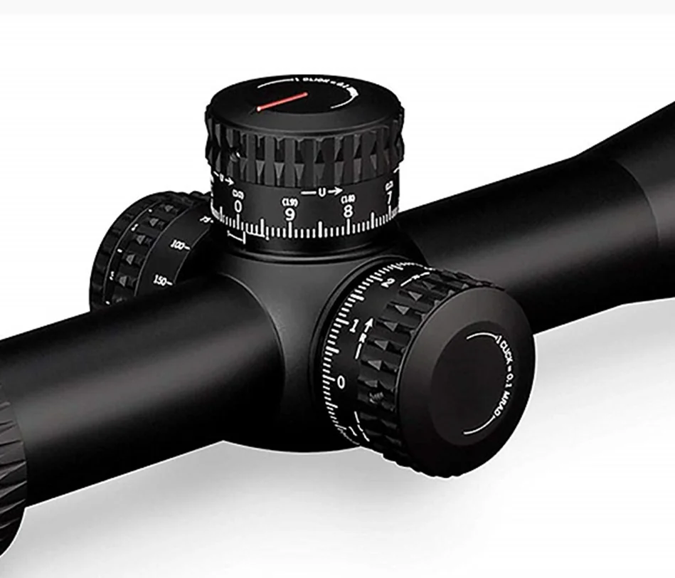 Viper PST Gen.II 5-25x50 оснащен тактическими турелями с шагом выверки 1/10 mrad. Волоконно-оптическая полоса на крышке револьверной головки дополнительно помогает контролировать положение и количество внесенных поправок. Высокоточная механика с четкими кликами и плавным ходом имеет запас введения поправок по вертикали на 20 mrad и горизонту 10 mrad. Есть функции сброса настроек и быстрого возврата.