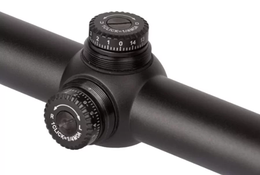 Прицелы серии Vortex Crossfire II оснащены механизмами ввода правок закрытого типов. Низкий профиль не мешает обзору. Цена клика ¼ МОА, за один оборот барабана сетка сместится на 15 угловых минут. Диапазон регулировок по двум остям составляет 50 МОА, чего вполне достаточно для упражнений в снайпинге.