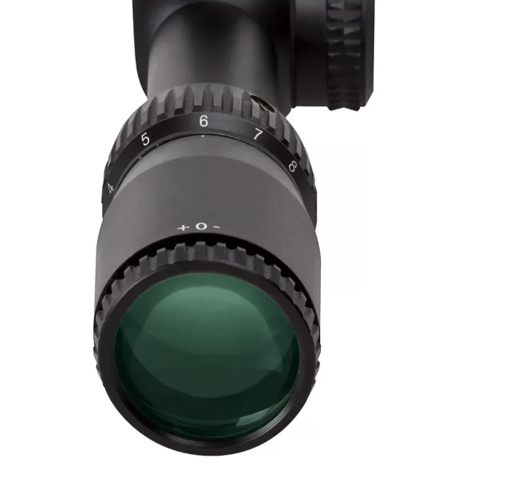 Фирменное просветляющее покрытие Fully Multi-Coated гарантирует получение яркого и контрастного изображения цели при слабом, сумеречном освещении. Большой диаметр объектива (50 мм) обеспечивает хорошую видимость мелких объектов даже на максимальном увеличении. Оптический диапазон кратности от 4 до 12х подходит для ювелирной стрельбы на расстояниях до 800 метров. На окулярный узел возможна установка фирменного кольца быстрой смены кратности (приобретается отдельно). Ширина поля зрения 7,8-2,6 м/100м позволяет быстро находить цель и оперативно реагировать. Вынос окулярной точки на 99 мм повышает безопасность при стрельбе крупным калибром. Люди с ослабленным зрением могут воспользоваться диоптрийной корректировкой окуляра.