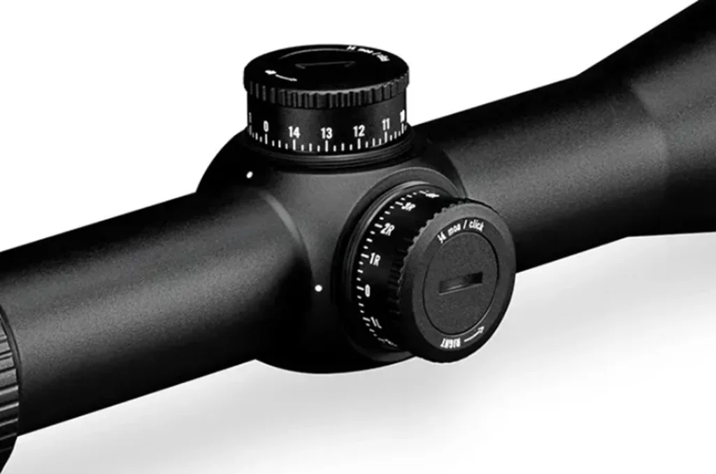 Прицелы Vortex Razor LH HD оснащены низкопрофильными барабанами ввода правок. Закрытый тип полностью исключают вероятность случайного смещения при переходах и случайных ударах. Цена клика ¼ МОА. Доступен запас хода на дальность и ветер по 90 МОА. Один оборот барабана сместит сетку на 15 угловых минут.