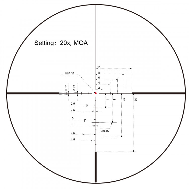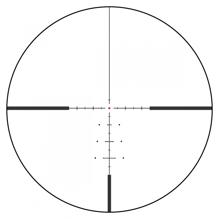 Баллистическая прицельная сетка G4 BDC с разметкой в угловых минутах (MOA) – идеальное решение для скоростной стрельбы на коротких и средних дистанциях. Конфигурация позволяет вести стрельбу выносом, контролируя точку попадания по BDC меткам. По четко видному просвету между горизонтальными и вертикальной направляющей можно оперативно ловить центр и брать упреждение при выстрелах по подвижным объектам. Расположение во второй фокальной плоскости сохраняет размеры сетки при любом увеличении.
