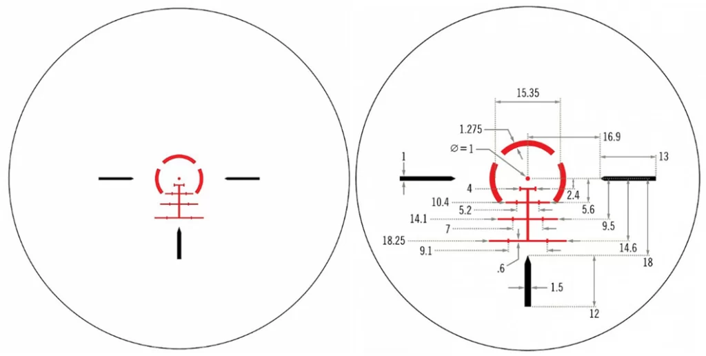AR-BDC2 – сетка с баллистической разметкой под патрон 5,56(.223) позволит полностью реализовать потенциал оружия. Сегментированный центральный круг и нижняя направляющая с BDC метками и горизонтальной разметкой позволяет контролировать падение пули на дистанции. Также конфигурация удобна и при работе по подвижным объектам. Стрелок может брать упреждение на движение и компенсировать ветровую нагрузку при стрельбе уже на средних дистанциях. Сетка располагается во второй фокальной плоскости. Угловые размеры между элементами имеют истинное значение на увеличении 8х. Встроенная подсветка поможет идеально настаивать видимость на разный уровень освещения. Для регулировки доступно 11 уровней. Питание от батареи CR 2032.