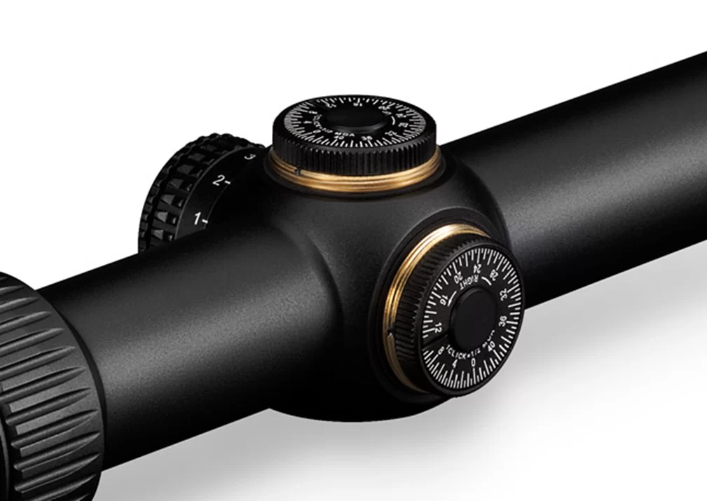 На прицеле Strike Eagle 1-8X24 (SE-1824-1) установлены низкопрофильные барабанами ввода поправок закрытого типа с функцией обнуления. Шаг выверки ½ МОА, запас хода сетки по вертикали и горизонту 100 угловых минут (МОА).