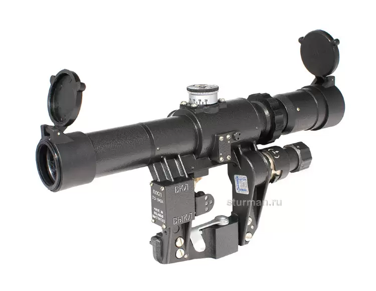 Назначение оптического прицела ПСПУ 2,5-5x24 Прицел дневной оптический ПСПУ 2,5-5x24 предназначен для ведения прицельной стрельбы из охотничьих карабинов «Тигр», СКС и других, с установленной направляющей "ласточкин хвост" на боковой поверхности ствольной коробки. Прицел отличается надёжностью, прочностью и неприхотливостью к условиям эксплуатации. Сетка подобная ПСО с дальномерной ростовой шкалой 1/400 и шкалами вертикальных и боковых поправок, позволяет оценить расстояние до цели и выполнить точный выстрел, корректируя линию огня без использования барабанчиков выверки. Основные характеристики оптического прицела ПСПУ 2,5-5x24  Конструкция влаго- и пыленепроницаема, устойчива к перепадам температур в диапазоне -40°C…+50°C Внутренние полости заполняются азотом Ударная стойкость на нарезном огнестрельном оружии – 2100…3600 Дж (данные из таблицы дульной энергии https://sturman.ru/category/pricely/) Крепление: боковая планка «ласточкин хвост» Увеличение 2,5 – 5 крат, объектив – 24 мм Угловое поле зрения 8°30' - 5°30' Удаление выходного зрачка 77 мм (при 2,5x) – 61 мм (при 5x) Масштабируемая прицельная сетка ПСО-подобная с ростовой дальномерной шкалой 1/400 и шкалами вертикальных и горизонтальных поправок Подсветка сетки красного цвета, питание 1,5В от 1 элемента типоразмера AА Маховики ввода поправок по вертикали и горизонтали тактического типа, смещение точки прицеливания при вращении маховичка на 0,5 деления (1 клик) – 5 мм /100 м  Конструктивные особенности оптического прицела ПСПУ 2,5-5x24 Прицел оптический ПСПУ 2,5-5x24 рассчитан на отдачу патронов калибром 7,62 x 54 R и 7,62 x 39. Во избежание запотевания линз при резких перепадах температуры, сборка прицела на завершающих стадиях ведется в азотной камере, таким образом во внутренних полостях прицела отсутствуют водяные пары. Окуляр прицела настроен на "нормальное зрение": -1 дптр. Прицел устанавливается на оружие с помощью цельного с корпусом бокового крепления на планку «ласточкин хвост» (до упора со стороны приклада) и фиксируется зажимным рычагом. Регулировка усилия зажима производится перестановкой рычага на зубчатой головке зажимной гайки. Для корректировки линии прицеливания и определения СТП используются барабанчики ввода поправок (с разметкой на белом фоне). Вращение маховичка на 0,5 деления (1 клик) соответствует перемещению линии прицеливания на 5 мм на расстоянии 100 м. Для сброса настроек на «ноль» необходимо ослабить винты на гайке маховиков и повернуть оправу до совмещения «0» с индексом на корпусе. Для возврата к заводским настройкам необходимо совместить красные штрихи на гайке и подвижной части барабанчиков. Масштабируемая сетка с дальномерной шкалой позволяет при любой кратности от 2,5x до 5х определить расстояние до объекта высотой 1м на дистанции до 400 м. Для ведения стрельбы в условиях недостаточного освещения предусмотрена возможность подсветить прицельную сетку свечением светодиода красного цвета. Всю необходимую информацию о прицеле ПОСП 2,5-5x24 Т (Тигр 1/400) вы можете получить, позвонив нам по телефону 8 (495) 989 10 56 или разместив вопрос на сайте нашего интернет-магазина. Комплект поставки:  Оптический прицел ПСПУ 2,5-5x24 Откидные (flip-top) крышки объектива и окуляра Наглазник Футляр Руководство по эксплуатации  Технические характеристики оптического прицела ПСПУ 2,5-5x24   Основные ТТХ  Оптические характеристи