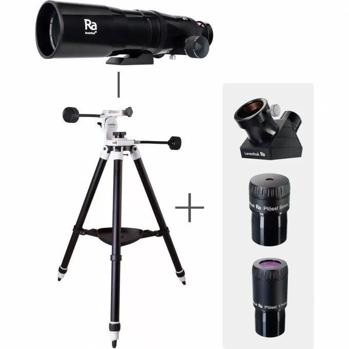 Оптическая труба укомплектована набором аксессуаров, позволяющим начинать наблюдения незамедлительно. В него входит диагональное зеркало для получения прямого изображения (диэлектрическое покрытие отражает 99% света) и окуляры системы Плёссла (6 мм и 17 мм). Для удобства транспортировки оптической трубы в комплекте есть алюминиевый кейс.