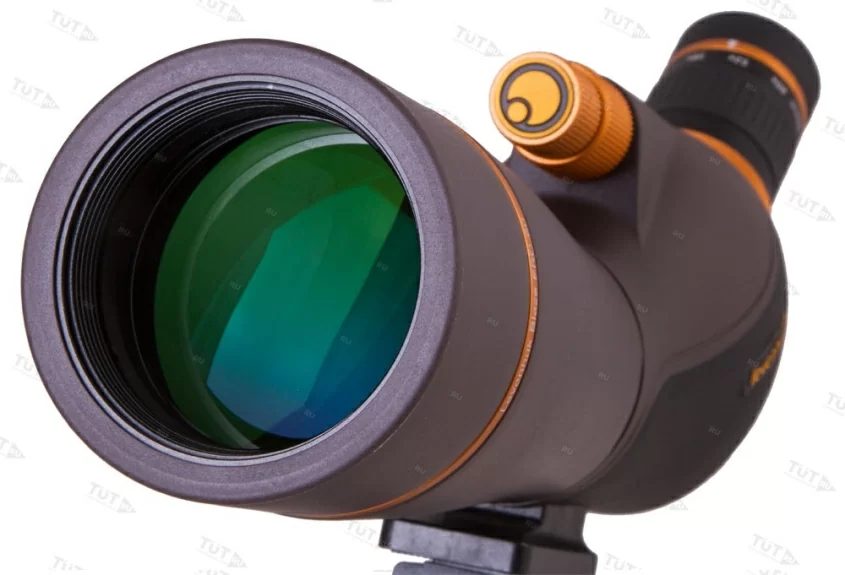 Оптика передает четкое и контрастное изображение при любой освещенности. Вы сможете вести наблюдения и в ясный солнечный день, и при низкой облачности, и в сумерках. Оптические элементы сделаны из стекла BK-7 и многократно просветлены. Увеличение можно плавно менять в диапазоне от 20 до 60 крат. Съемный окуляр установлен наклонно, благодаря чему удобно следить за полетом птиц или изучать кроны деревьев.