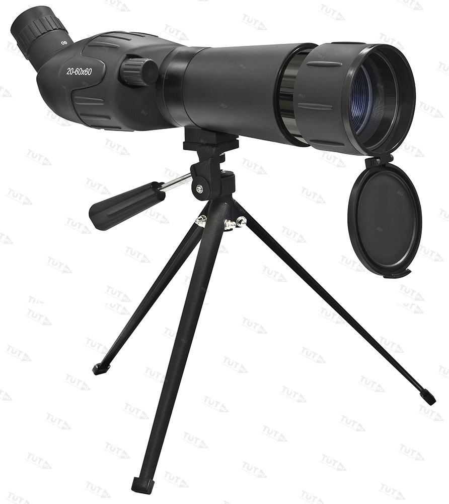 В комплект поставки включен небольшой настольный штатив. Он интересен тем, что не ограничивает вращение зрительной трубы – ее можно развернуть в любую сторону. Кроме того, для хранения и переноски есть сумка. Широкий ремень позволяет удобно вешать ее на плечо.