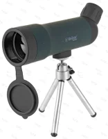 Увеличение 20x, диаметр объектива 50 мм, обрезиненный корпус, оптическое стекло BK7, окуляр 45 град., в комплекте штатив и сумка.