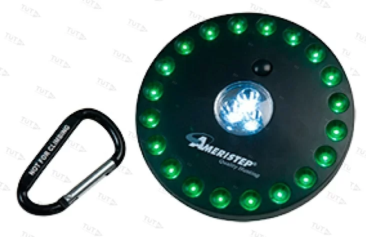 Американская компания Ameristep выпустила на рынок новинку - лампы BLIND LED LIGHT для более комфортного пребывания в засидке во время ожидания появления дикого животного. Лампа оснащена 20 зелеными светодиодами по краю и тремя белыми светодиодами в центре. Вы можете регулировать интенсивность освещения. Рекомендуется использовать белый свет в центре до и после охоты, чтобы не спугнуть животных.