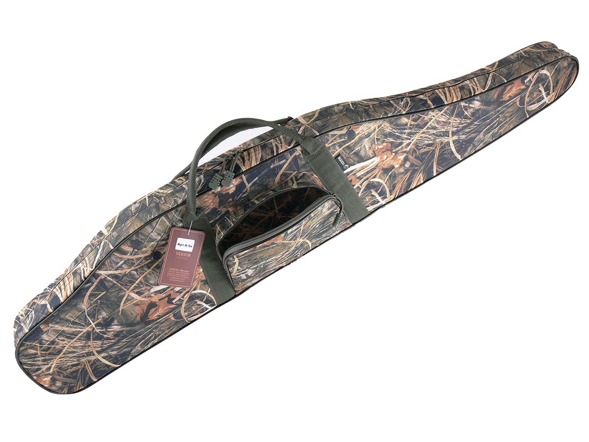 VEKTOR Чехол с поролоном для винтовки с оптическим прицелом, длина чехла 119 см, камыш.Арт. К-5к камыш.Рекомендован для хранения и транспортировки винтовки с оптическим прицелом.Материал использован плотный и износоустойчивый.С одной стороны находится регулируемый ремень, который позволяет переносить чехол не только за ручки в горизонтальном положении, но и на одном плече вертикально.Чехол содержит поролон и подкладку смесового материала, которые защищают оружие от царапин и других механических повреждений.Закрывается основное отделение на молнию с двумя замками.Также на чехле имеется специальная петля, которую удобно использовать при хранении чехла, подвешивая его.О производителе:Компания "Вектор".Даже в наше время, в эпоху высоких технологий и невероятных скоростей, дух настоящего мужчины остаётся неизменным. Дух охотник, дух воина-добытчика и защитника.Любой настоящий специалист скажет Вам ? профессионализм требует качественного и современного снаряжения.Компания Вектор уже много лет занимается разработкой и производством самого разного снаряжения для охотников, военных и сотрудников силовых структур.При этом используется самое современное оборудование и материалы, в цехах работают увлечённые и квалифицированные специалисты. Компания постоянно развивается и растёт.Продукцию компании знают и ценят по всей России и за её пределами.Характеристики:Внешние размеры чехла (ДхВхТ): 119х26х6 смДлина оружия: до 115