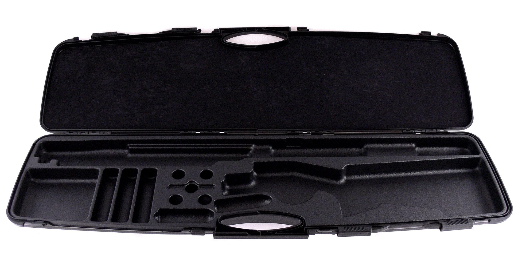 Кейс Negrini для гладкоствольного оружия, вельвет, с отделениями, длина стволов до 940 мм., внутренний размер 95,5х24х8 см.(6 шт./уп.).Арт. 1607TLS.Компания Negrini (ИТАЛИЯ).Много лет компания Negrini - официальный поставщик армии, ВМФ и сил правопорядка во многих странах. Компания Negrini занимается оружейными кейсами от разработки дизайна до изготовления конечного продукта у себя на производстве. Кейсы Negrini были первыми кейсами из ABS пластика на рынке оружейных кейсов.Внешние и внутренние части кейсов изготавливаются из пластика марки ABS и соединяются посредством специальной технологии ультразвуковой сварки. Основные свойства этого материала с точки зрения эксплуатации это: ударопрочность и отсутствие усыхания в отличие от дерева. Внутренняя обивка выполнена из хлопка или акриловой ткани составляющего основание кейса с которым соединяется вспененный полиэстер (поролон). На крышке кейса скрепление обивки и поролона сделано плавлением, в основании же для этой цели используется клей с нагревом в момент проклейки. Все материалы применяемые в производстве кейсов не подвержены коррозии, не испаряют вредные вещества и не меняют своих свойств и размеров в зависимости от температуры.Все кейсы Negrini изготовлены из безвредных для окружающей среды материалов и полностью перерабатываются без использования вредных кислот. Поэтому на протяжении всего жизненного цикла продукция Negrini не наносит ущерба окружающей среде.Все кейсы Negrini производятся в соответствии с правилами, регулирующими перевозки опасных грузов, и допущены к авиаперевозкам.Кейс Negrini 1607TLS для гладкоствольного оружия, с максимальной длинной стволов до 940мм.Изготовлен из пластика. Цвет – чёрный. В нижней половинке имеется специальная термоформа, а верхняя половина имеет поролон закрытый тёмным вельветом, для удобного размещения оружия и аксессуаров в кейсе. Имеет 4 Скользящих замка.