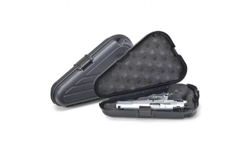 Кейс Plano для пистолета, пластик ABS, поролон, внутр.размер 27х5х12,7(см.), черный, вес 213гр.. (6 шт./уп.)Кейс Plano 142300 предназначен для хранения и безопасной переноски (транспортировки) крупных боевых, газовых и пневматических пистолетов типа ТТ, Beretta 92, CZ 82/83, Colt 1911, а также травматическим пистолетов Гроза, Хорхе. Кейс имеет двойную стенку из пены высокой плотности и составляет 1,6 мм.Компактная и прочная толстостенная конструкция бокса предотвращает попадание в него влаги и пыли, устойчива к изменениям температуры и нагрузки.Для предотвращения повреждения оружия при переноске или перевозке внутри футляра имеются две толстые рельефные прокладки из плотного поролона.Бокс закрывается и открывается с помощью надежной пластиковой рояльной петли.Удобные, надежные и легкие в использовании замки (защелки) патентованной системы PillarLock.Предусмотрена возможность при хранении и транспортировке закрыть кейс на навесной замок. При установке на изделие навесного замка исключается доступ посторонних лиц, в том числе и детей к оружию, кроме того, упрощает транспортировку и перевозку оружия общественным транспортом, так как в этом случае оно должно находиться перевозятся в специальной таре (чехлах, кобурах или специальных футлярах).Характеристики и размеры:Материал: Противоударный пластик ABSВнешние габариты: 29,1 x 6,9 x 19 смВнутренние габариты: 28,2 x 6 x 18,3 см