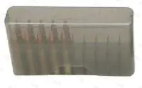 Коробочка-кейс с крышкой, для безопасной переноски и хранения 20-ти патронов калибра 7,62*39. Материал - пластик дымчатого цвета. Нет специальных требований к хранению и транспортировке. Не подлежит обязательной сертификации. Производитель: MTM Molded Products Company, 3370 Obco Court, Dayton, Ohio 45414, USA Произведено в США