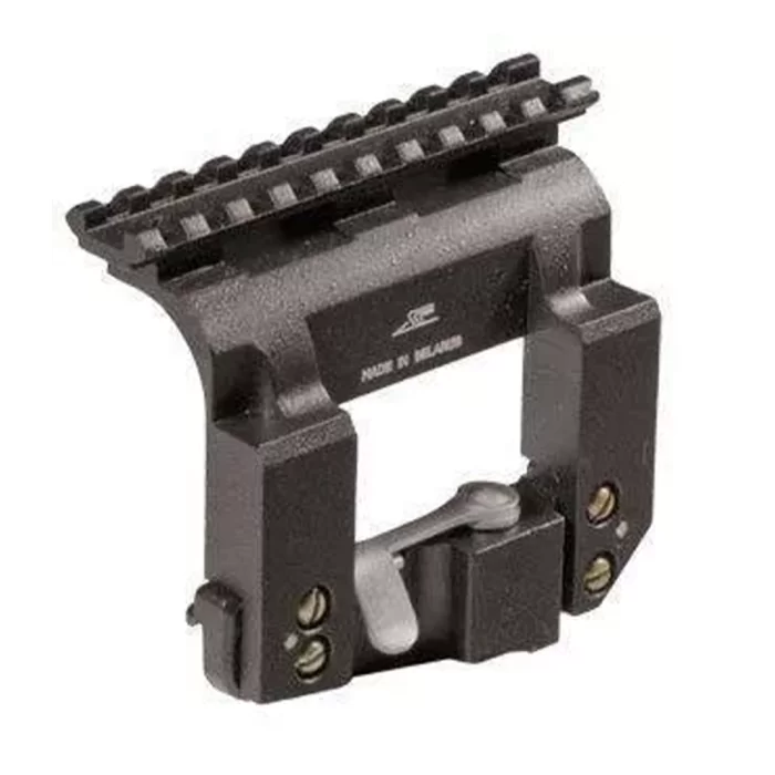 Установка кронштейна на оружие осуществляется на штатную оружейную базу «ласточкин хвост» шириной 14,5 мм и надежно крепится рычажным механизмом. Такой вид фиксации позволяет устанавливать/снимать кронштейн в считанные секунды без использования дополнительного инструмента.