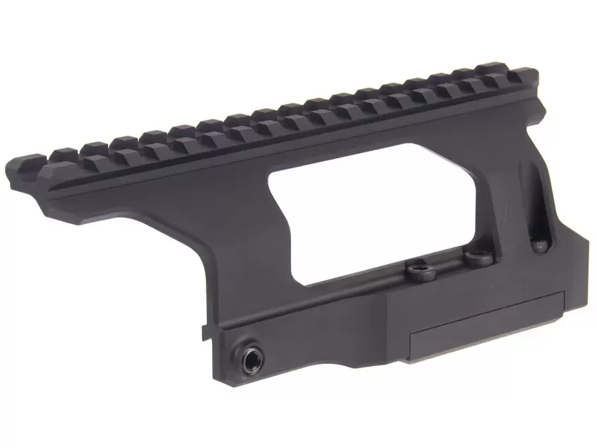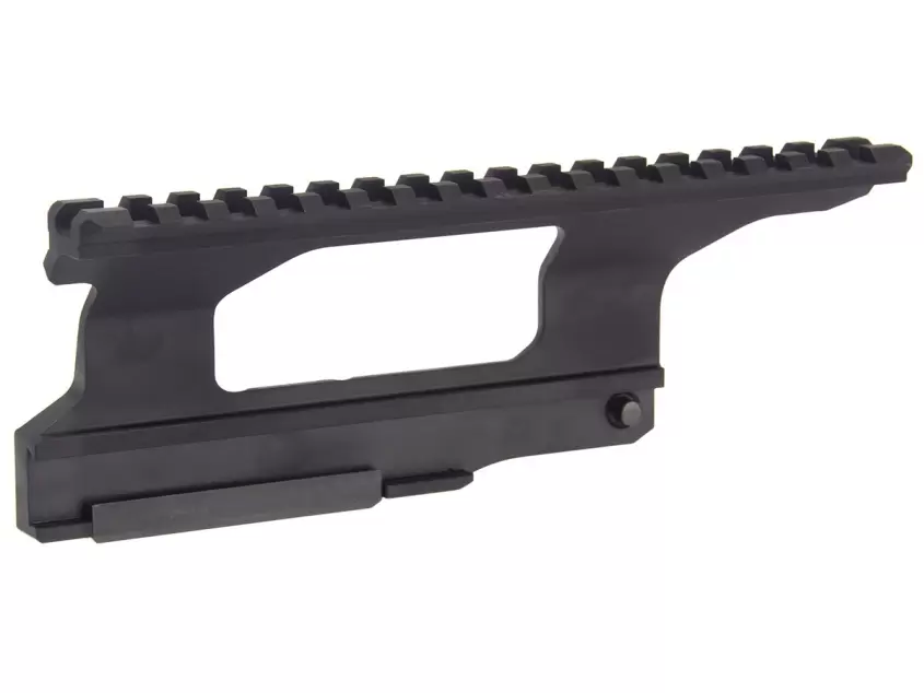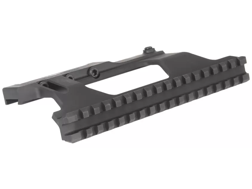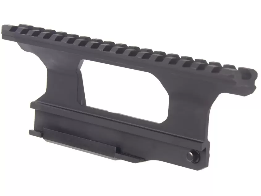 Рельса Picatinny составляет 17 шагов, а ее общая длина 18 сантиметров, чего вполне достаточно для любого оптического прибора.