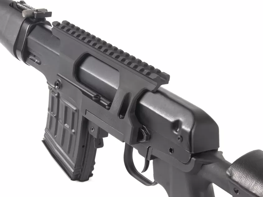 Боковой кронштейн на СВД обладает низким профилем, благодаря чему прицельные приспособления располагаются наиболее близко к прицельной линии, что облегчает пристрелку;