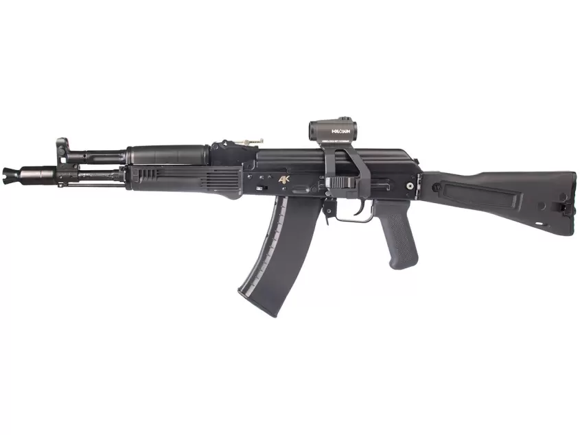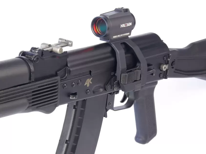Компактный и легкий кронштейн с посадочным местом для Aimpoint Micro, фрезерованный из бруска высокопрочного алюминиевого сплава, предназначенный для установки небольших коллиматорных прицелов на базу АК без внесения каких-либо изменений в оригинальный карабин.