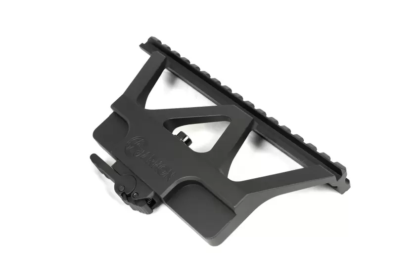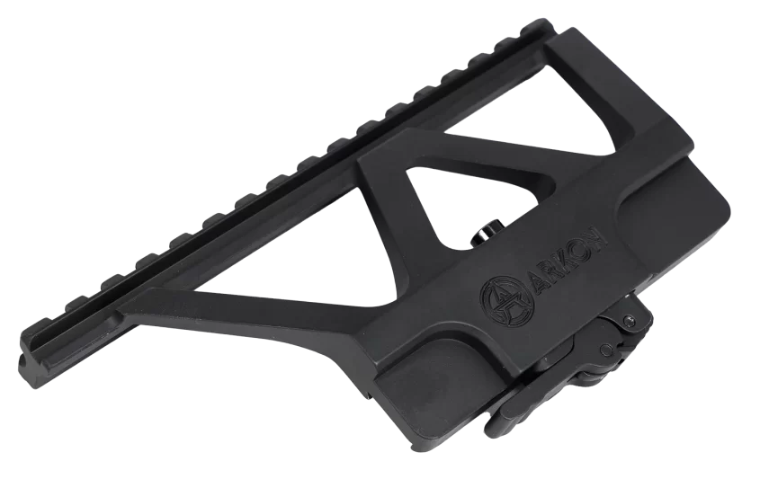 Монолитная конструкция кронштейна создана из сверхпрочных сплавов авиационного алюминия на высокоточных станках с ЧПУ (числовым программным обеспечением). Данный техпроцесс обеспечивает идеальное соответствие сопрягающихся частей, чем достигается надежность крепления и неподвижное положение даже тяжелой оптики. Кронштейн оснащен запирающим замком рычажного типа с механическим фиксатором. Натяжение флажкового механизма регулируется специальным винтом. Особенностью данного крепления является возможность установки цифровых и тепловизионных прицелов Аркон напрямую, без необходимости использования дополнительного крепления. Для этого в основании имеется ряд отверстий, в точности соответствующих посадочным местам прицелов. На все поверхности кронштейна нанесено защитное анодированное покрытие.