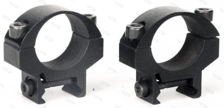 Ассортимент колец включает диаметры 25,4 и 30 мм. Есть кольца под ласточкин хвост, Picatinny и Weaver. Подобрать их можно и по высоте. Высота колец, выпускаемых заводом: 12–16, 16–20 и более 30 мм.