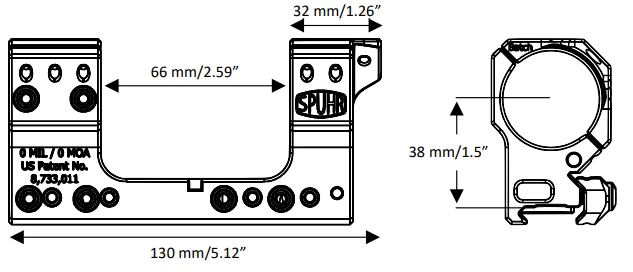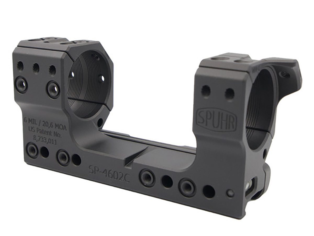 Кронштейн SPUHR с наклоном 6 MIL (20,6 MOA) обеспечивает высокую точность и надёжность при использовании оптики для стрельбы на дальние дистанции. Высота кронштейна составляет 38 мм от планки до центра колец, что делает его совместимым с различными типами прицелов.