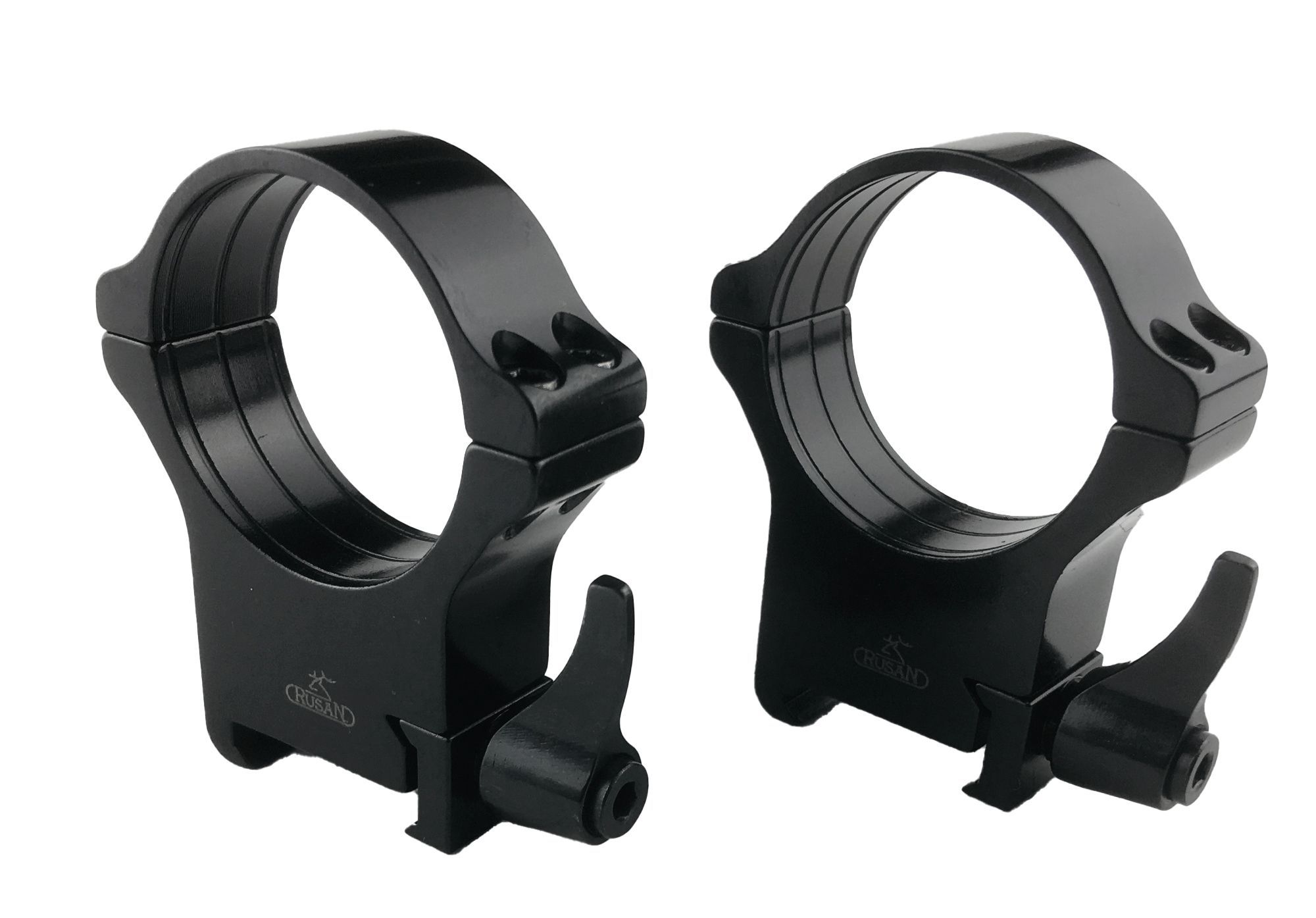 Быстросъемные кольца Rusan 34 мм (модель 050-34-18-R) предназначены для надежного крепления оптических прицелов на планку Weaver. Эти кольца оснащены рычажным механизмом, который позволяет быстро и удобно снимать или устанавливать прицел без использования инструментов.