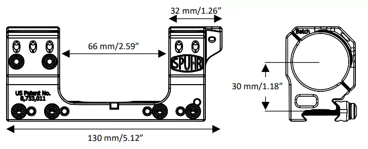 Кронштейн SPUHR обеспечивает надёжную фиксацию и оптимальное положение прицела для точной стрельбы. Высота кронштейна составляет 30 мм от планки до центра колец, что делает его совместимым с различными типами прицелов.