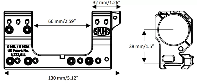 Кронштейн SPUHR обеспечивает надёжную фиксацию и оптимальное положение прицела для точной стрельбы. Высота кронштейна составляет 38 мм от планки до центра колец, что делает его совместимым с различными типами прицелов.